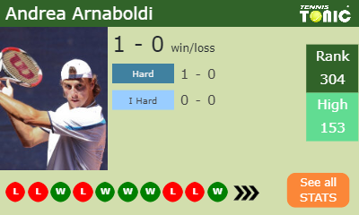 Arnaboldi has a 1-0 win-loss record in 2020, 1-0 on hard (See FULL STATS).