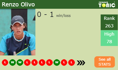 Olivo has a 0-1 win-loss record in 2020, 0-0 on hard (See FULL STATS).