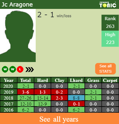 Aragone has a 2-1 win-loss record in 2020, 0-0 on hard (See FULL STATS).