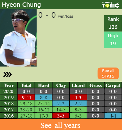 As per the initial odds, Hyeon Chung is the pick to win this match.