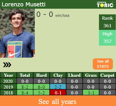 Ranked no. 361, Musetti will start his run at the Melbourne after he played his last match in M15 Te Anau where he lost 6-1 3-6 7-6(4) to Rai in the 2nd round the 2nd of January.