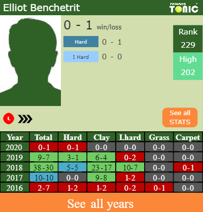 The French Player has a 0-1 win-loss record in 2020, 0-1 on hard (See FULL STATS).
