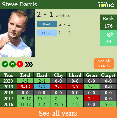 The Belgian has a 2-1 win-loss record in 2020, 2-1 on hard (See FULL STATS).