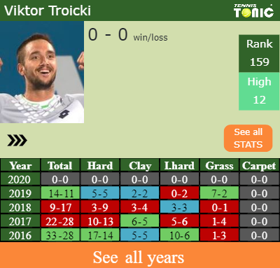 In terms of his career. Troicki has an overall 425-333 record. He has possitive 163-139 record on hard