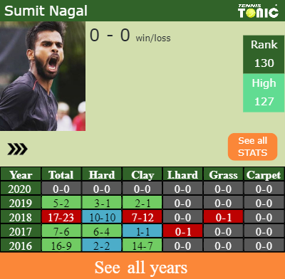Talking about his overall career, Sumit has an overall 51-51 record. He has flat 26-26 record on hard.