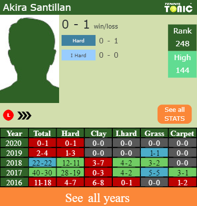 Akira has a 0-1 win-loss record in 2020, 0-1 on hard (See FULL STATS).