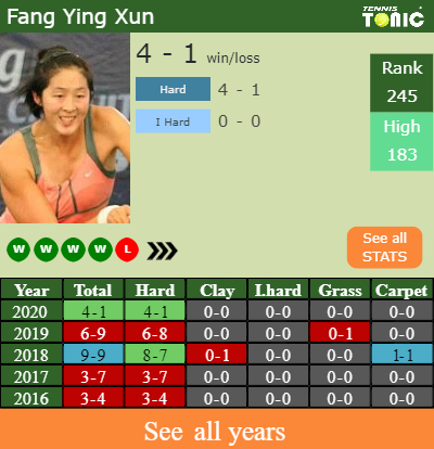 The Chinese has a 4-1 win-loss record in 2020, 4-1 on hard (See FULL STATS).