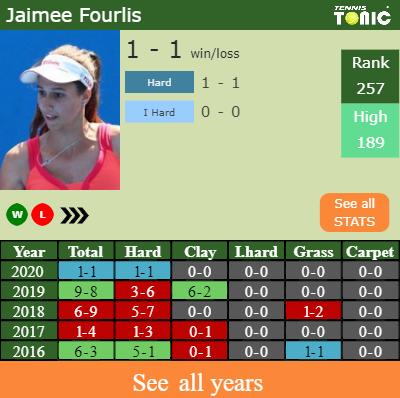 In terms of her career. Fourlis has an overall 23-25 record. She has negative 15-18 record on hard