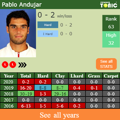Pablo has a 0-2 win-loss record in 2020, 0-2 on hard (See FULL STATS).