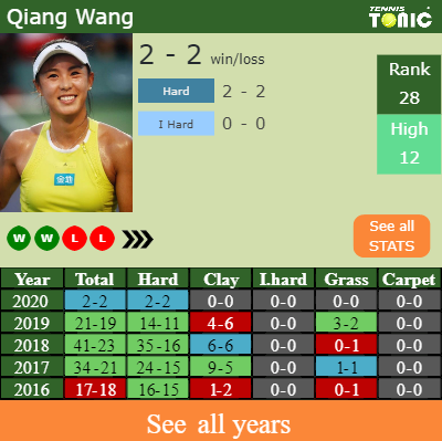 Qiang has a 2-2 win-loss record in 2020, 2-2 on hard (See FULL STATS).