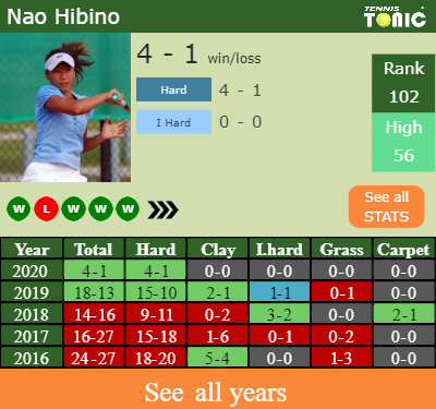 Hibino has a 4-1 win-loss record in 2020, 4-1 on hard (See FULL STATS).