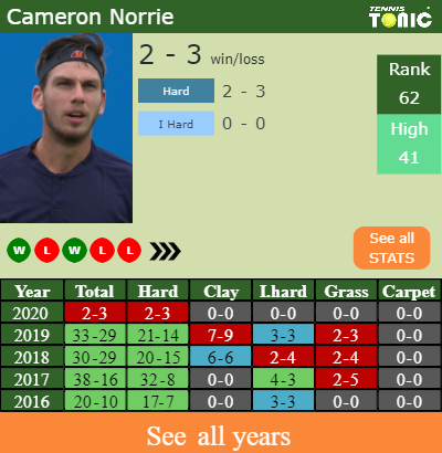 Talking about his overall career, Norrie has an overall 138-103 record. He has positive 102-54 record on hard.