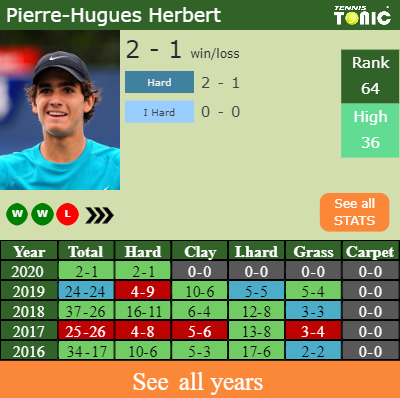 In terms of his career, Herbert has an overall 251-209 record. He has positive 80-70 record on hard.