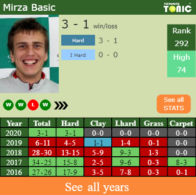 Basic has a winning win-loss record in the last 10 years having won 58% of his matches (509-363). 3-1 on hard in 2020. Regarding his performance on the same surface of this event, Basic has a 217-177 win-loss record in the last 10 years on hard.