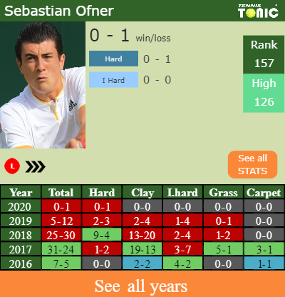The Austrian has a 0-1 win-loss record in 2020, 0-1 on hard (See FULL STATS).