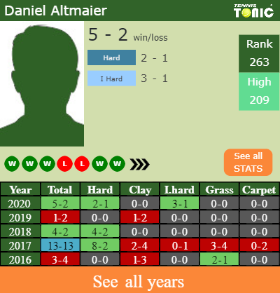 Altmaier has a 5-2 win-loss record in 2020, 2-1 on hard (See FULL STATS).