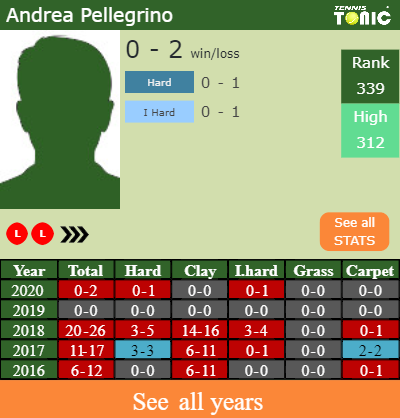 In terms of his career, Andrea has an overall 40-69 record. He has negative 3-8 record on indoor hard courts.