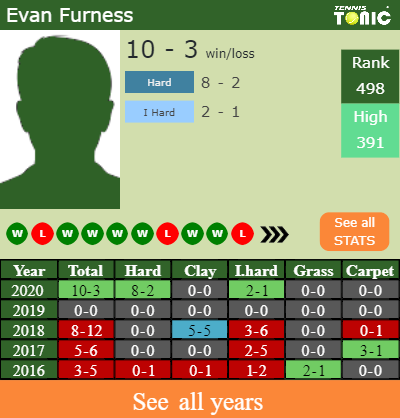 Furness has a 10-3 win-loss record in 2020, 2-1 on indoor hard courts (See FULL STATS).