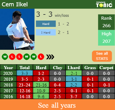 Ilkel has a 3-3 win-loss record in 2020, 2-1 on indoor hard courts (See FULL STATS).