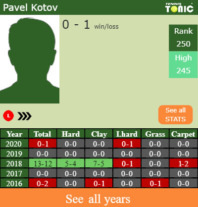 - Pavel KotovKotov – Altug CelikbilekCelikbilek (0-1) – See H2H details