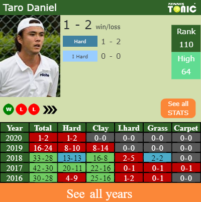 The pick for Tennis Tonic is Taro Daniel who should win in 2 sets.