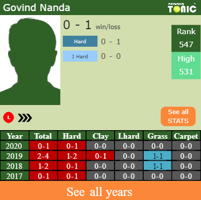 In terms of his career, Nanda has an overall 3-8 record. He has negative 1-5 record on hard.