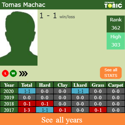 Machac has won exactly 50% of his matches (4-4) in the last 4 years. 1-1 on indoor hard courts in 2020. Talking about his performance on the same surface of this competition, Machac has a 2-5 win-loss record in the last 4 years on indoor hard courts.