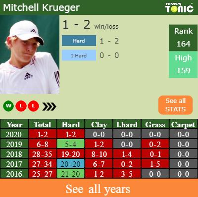 The American has a 1-2 win-loss record in 2020, 1-2 on hard (See FULL STATS).