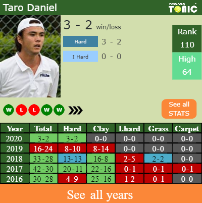 This will be the 3rd time that Taro Daniel and Mohamed Safwat clash against each other. The head to head is 2-0 for Daniel (see full H2H stats), but they have never competed against each other on hard.
