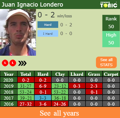 Juan has a 0-2 win-loss record in 2020, 0-0 on clay (See FULL STATS).