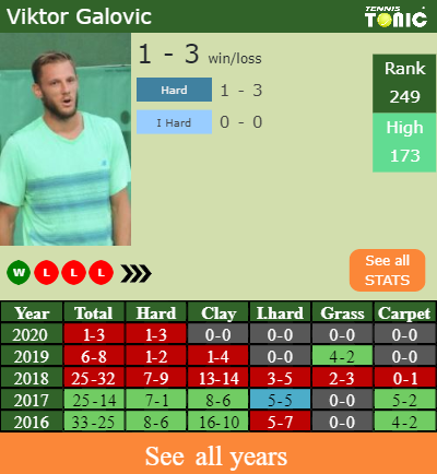 The Croatian has a 1-3 win-loss record in 2020, 1-3 on hard (See FULL STATS).