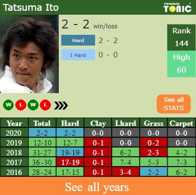 Ito has a 2-2 win-loss record in 2020, 2-2 on hard (See FULL STATS).