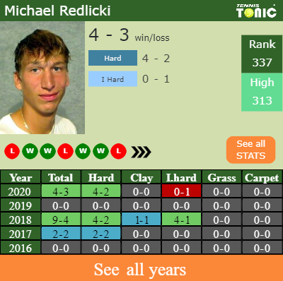 Talking about his overall career, Redlicki has an overall 20-13 record. He has positive 4-2 record on indoor hard courts.
