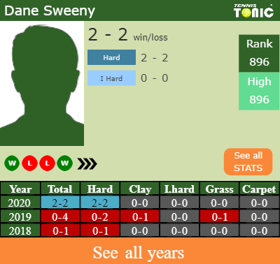 Sweeny has a 2-2 win-loss record in 2020, 2-2 on hard (See FULL STATS).