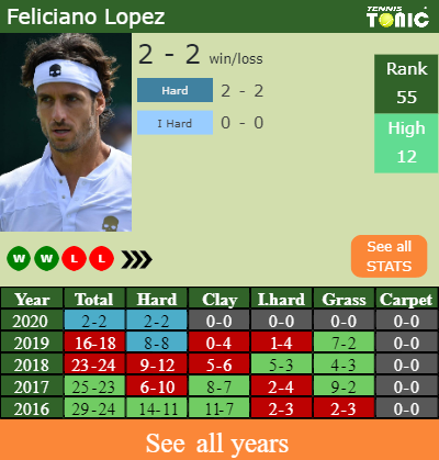 In terms of his career, Feliciano has an overall 500-443 record. He has negative 73-81 record on indoor hard courts.