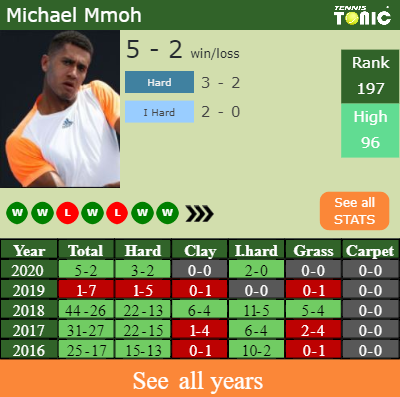 Mmoh has a 5-2 win-loss record in 2020, 2-0 on indoor hard courts (See FULL STATS).