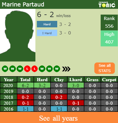 Partaud has a fantastic record in the last 6 years having won 81% of her matches (30-7). 3-0 on indoor hard courts in 2020. Talking about her performance on the same surface of this tournament, Partaud has a 8-7 win-loss record in the last 6 years on indoor hard courts.