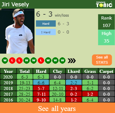 The Canadian has a 6-2 win-loss record in 2020, 3-0 on indoor hard courts (See FULL STATS).
