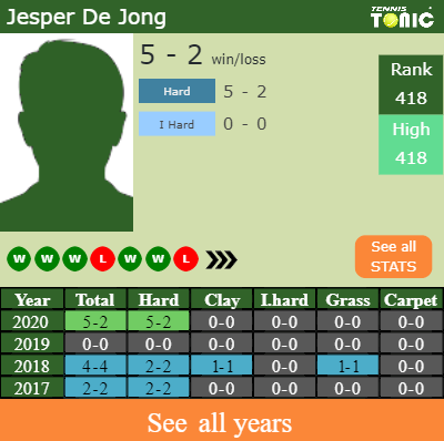 The Dutch has a 5-2 win-loss record in 2020, 0-0 on indoor hard courts (See FULL STATS).