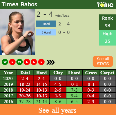 The Hungarian has a 2-4 win-loss record in 2020, 0-0 on indoor hard courts (See FULL STATS).