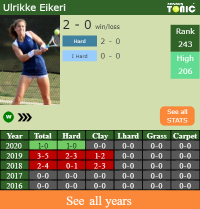 Eikeri has a 1-0 win-loss record in 2020, 1-0 on hard (See FULL STATS).
