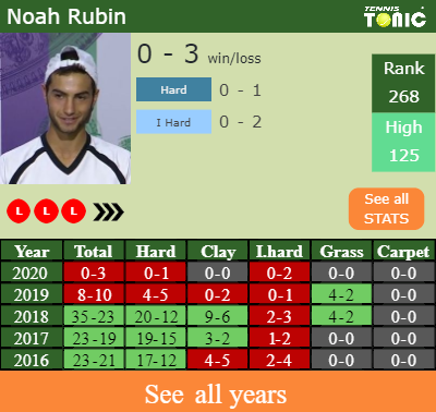 Rubin has a 0-3 win-loss record in 2020, 0-2 on indoor hard courts (See FULL STATS).