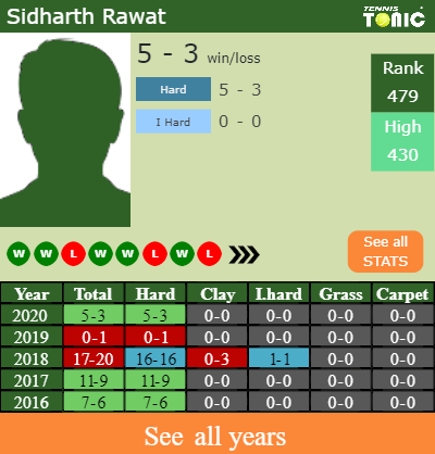 The Indian has a 5-3 win-loss record in 2020, 5-3 on hard (See FULL STATS).