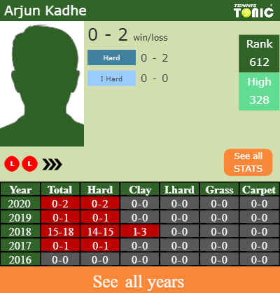 - Arjun KadheKadhe – Malek JaziriJaziri (0-0) – See H2H details
