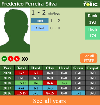Ferreira Silva has a 1-2 win-loss record in 2020, 1-2 on hard (See FULL STATS).