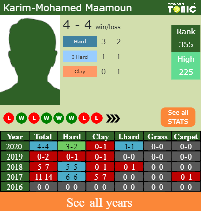 In terms of his career, Maamoun has an overall 20-27 record. He has flat 14-14 record on hard.