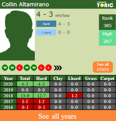 Altamirano has a 4-3 win-loss record in 2020, 0-0 on indoor hard courts (See FULL STATS).
