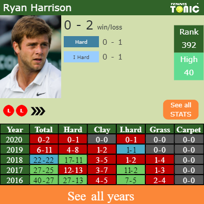 The American has a 0-2 win-loss record in 2020, 0-1 on indoor hard courts (See FULL STATS).