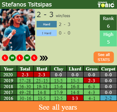 Stefanos has a 2-3 win-loss record in 2020, 0-0 on indoor hard courts (See FULL STATS).