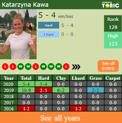 The Pole has a 5-4 win-loss record in 2020, 5-4 on hard (See FULL STATS).